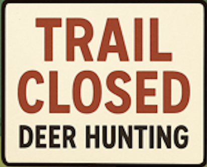 Nov 6 - Nov 12 Nov 20 - Nov 26 Dec 4 - Dec 10 Trail will reopen between each hunt week assuming weather conditions stay favorable. Please note that the trail will remain closed for this 2023 season following the last deer hunt week.
